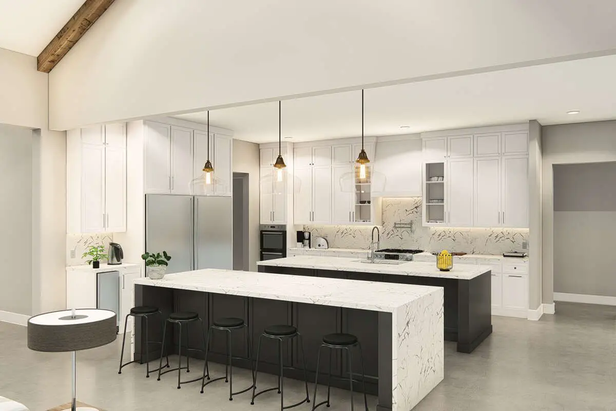 The kitchen includes a significant island for prep and seating, generous counter space, and a walk-through butler’s pantry or laundry/mud zone connecting to the garage for easier everyday movement. 3