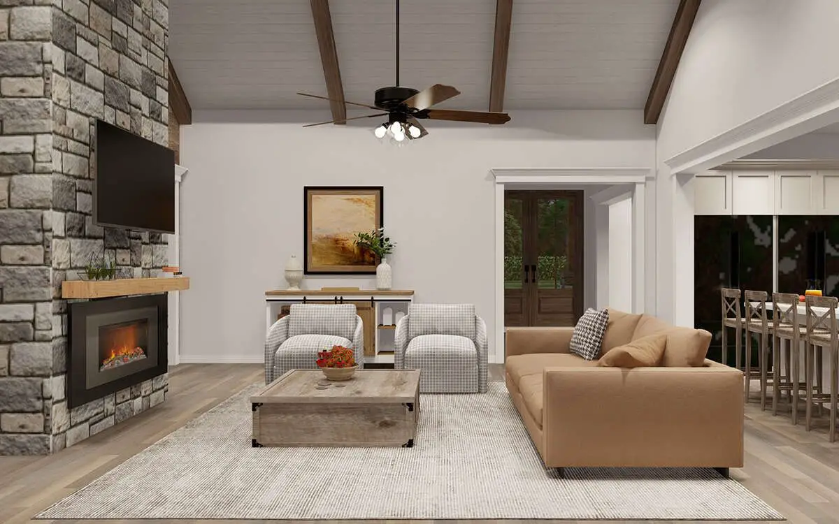 The great room, dining, and kitchen are seamlessly connected for comfortable everyday life and entertaining.