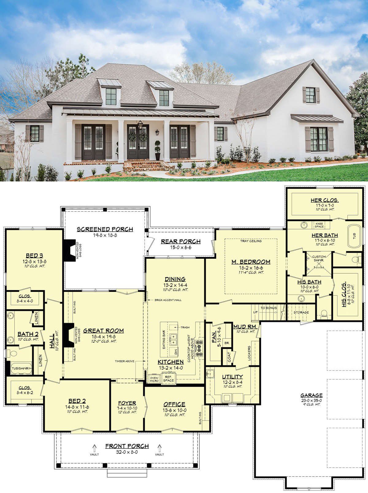 This generously laid-out country plan spans about 2,854 sq ft on one level, with 3 bedrooms, 2 full baths, and a 3-car garage.