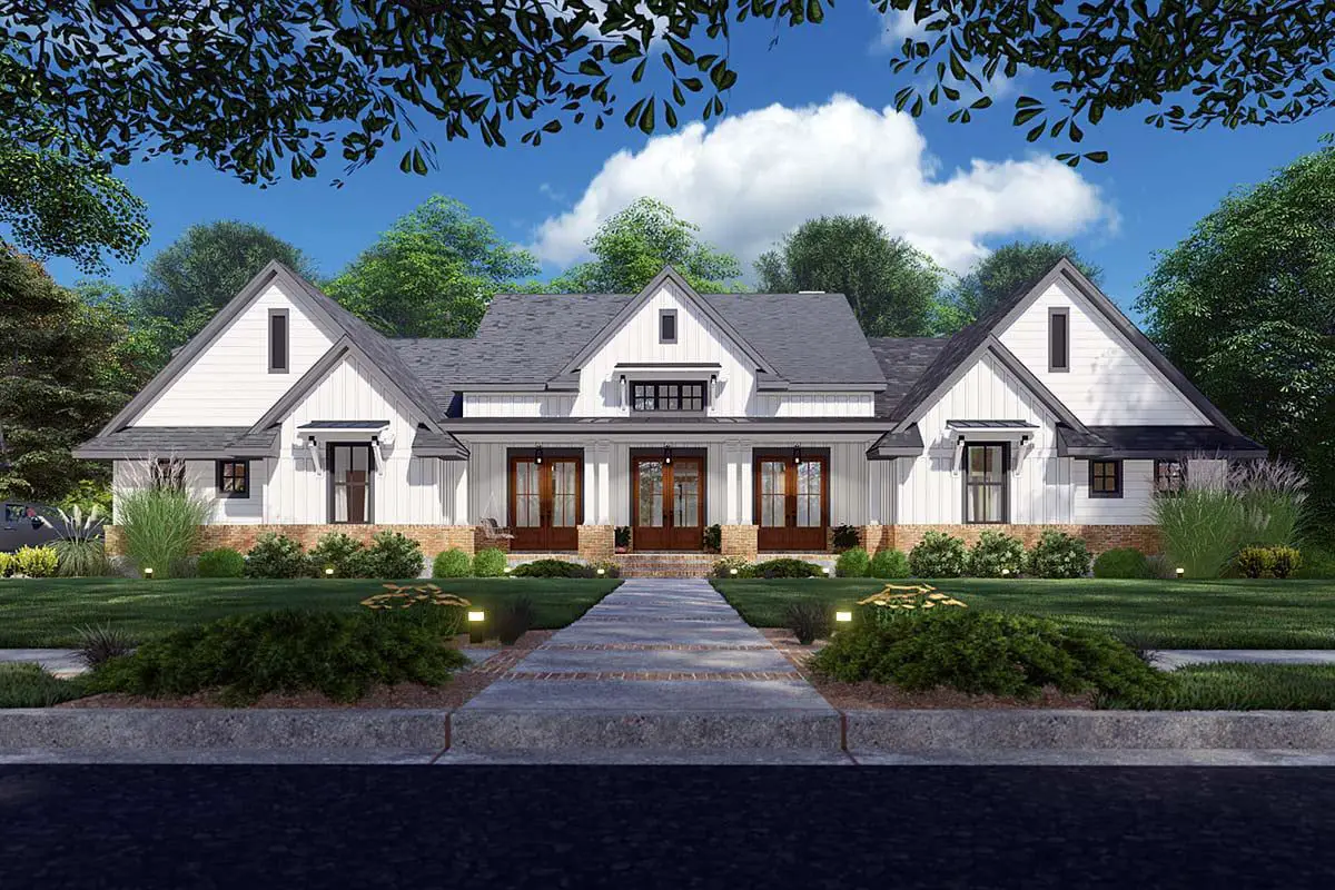 It’s elegant but practical, formal yet warm. You get a front-of-house presentation with French doors and symmetry, but behind that, a home designed for real life—open flow, smart storage, and room to grow.