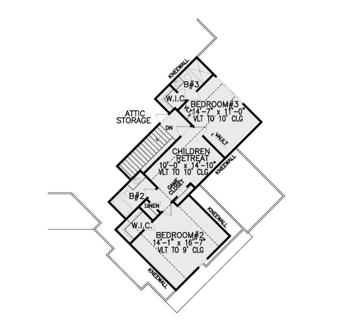 - Lodge Room / Great Room: Vaulted ceilings, built-ins, central fireplace, open to kitchen and dining. 5