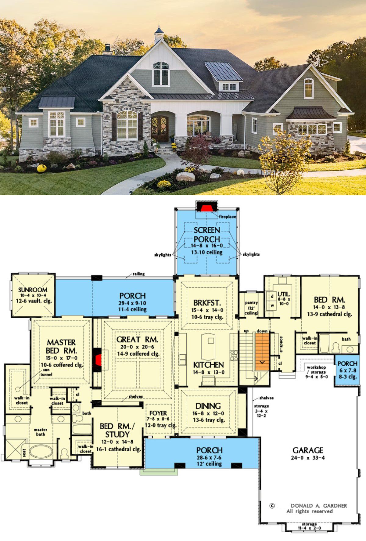 The master suite includes its own sunroom, vaulted ceilings, and direct outdoor connection.