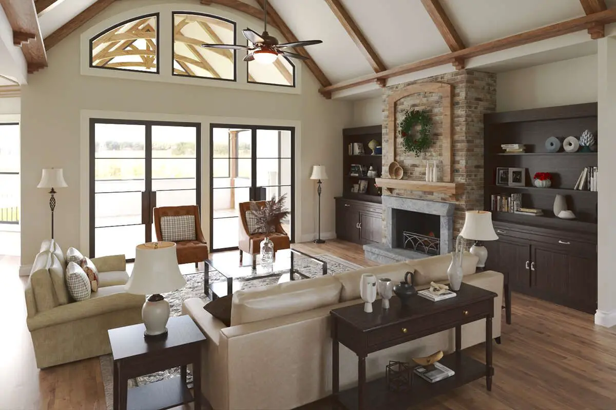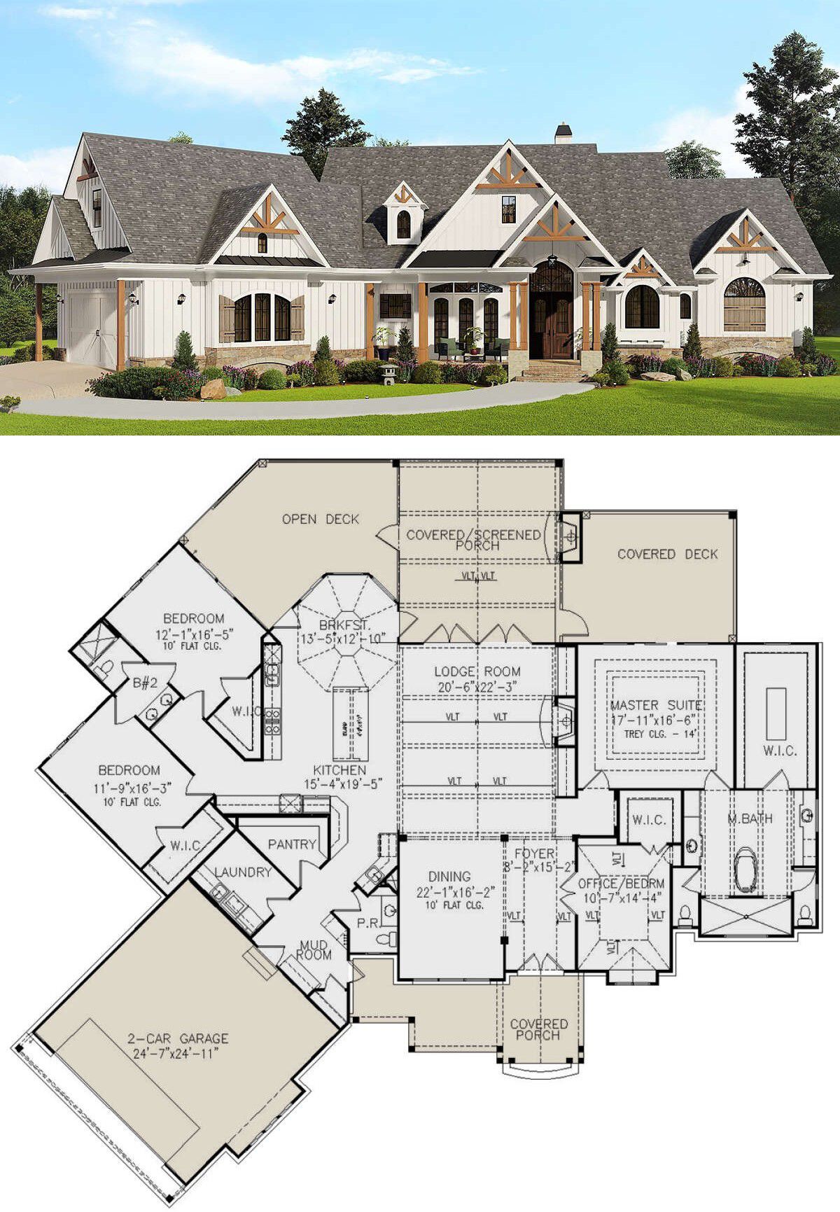 - Design Features: Open common area, master wing, covered patios, modern farmhouse details
