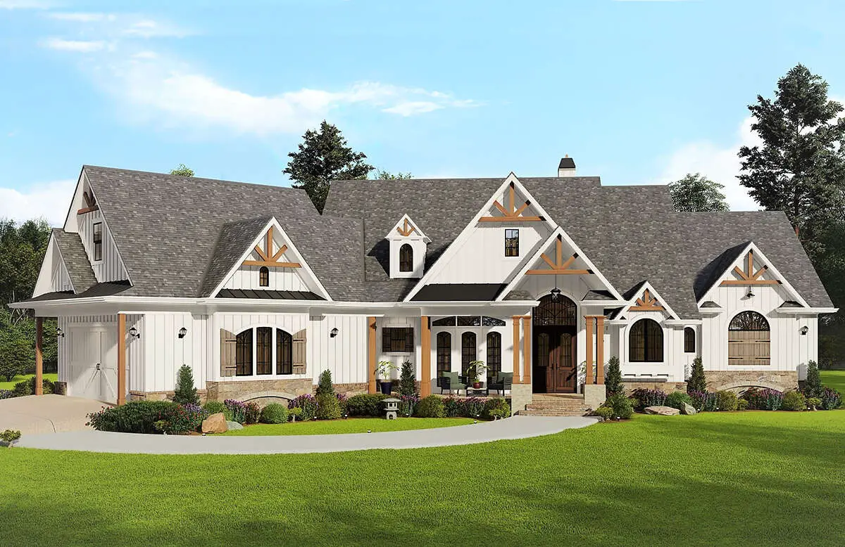 Board-and-batten siding paired with sleek roof pitches creates a fresh, timeless look.
