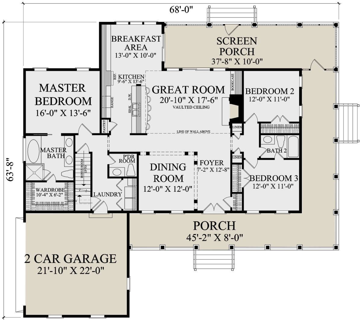 | Footprint Width × Depth | ~68′ × ~63′-8″ 7 |
