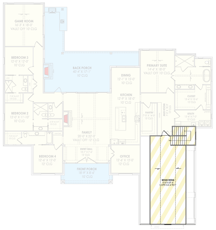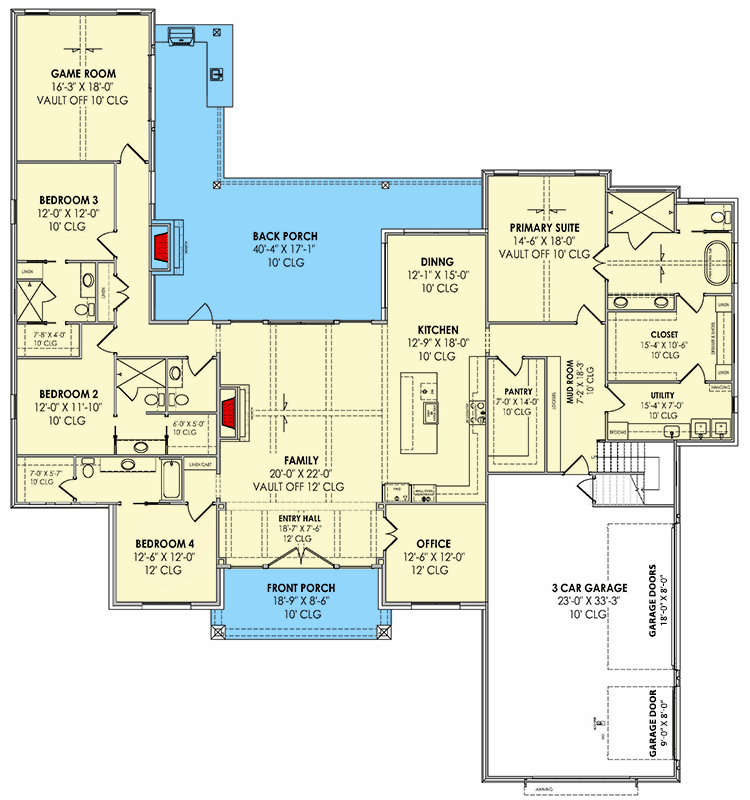 The other three bedrooms line the opposite side of the home, with a game room nearby — perfect for teens, guests, or turning into whatever flex space you need. 4