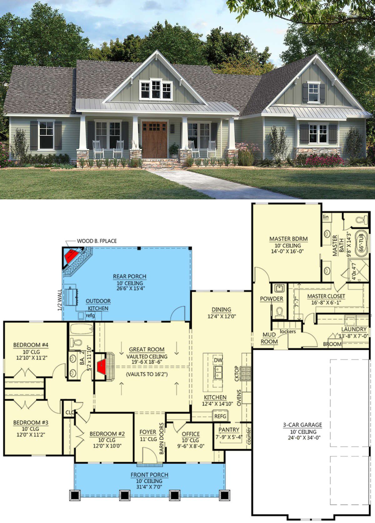 | Ceiling Heights | Great room vaults ~16′-2″, master ~10′ |