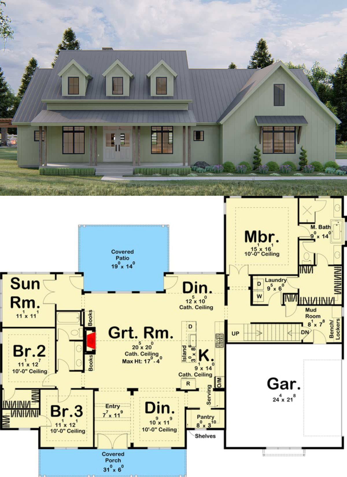 This plan hits a sweet spot: it’s not overly massive, yet it offers volume where it counts (hello, cathedral ceilings). It has flexibility built in, it flows well, and it wraps up convenient features with stylish design. If you want a modern farmhouse that feels upscale but manageable, this one deserves a close look.