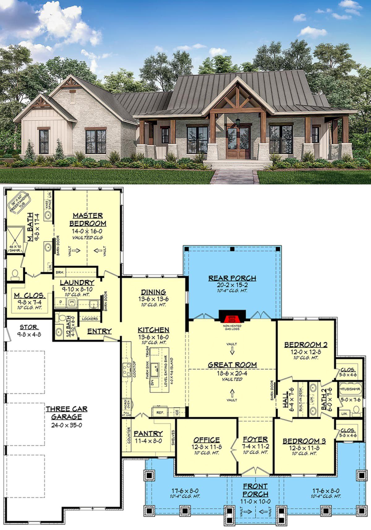 Front and rear outdoor spaces are built in. The wrap-around front porch sets a welcoming tone, while the rear porch pairs with the great room for relaxed evenings, weekend barbecues, or simply stretching out with a book. Structural detail and outdoor flow are part of the plan, not an afterthought. 7