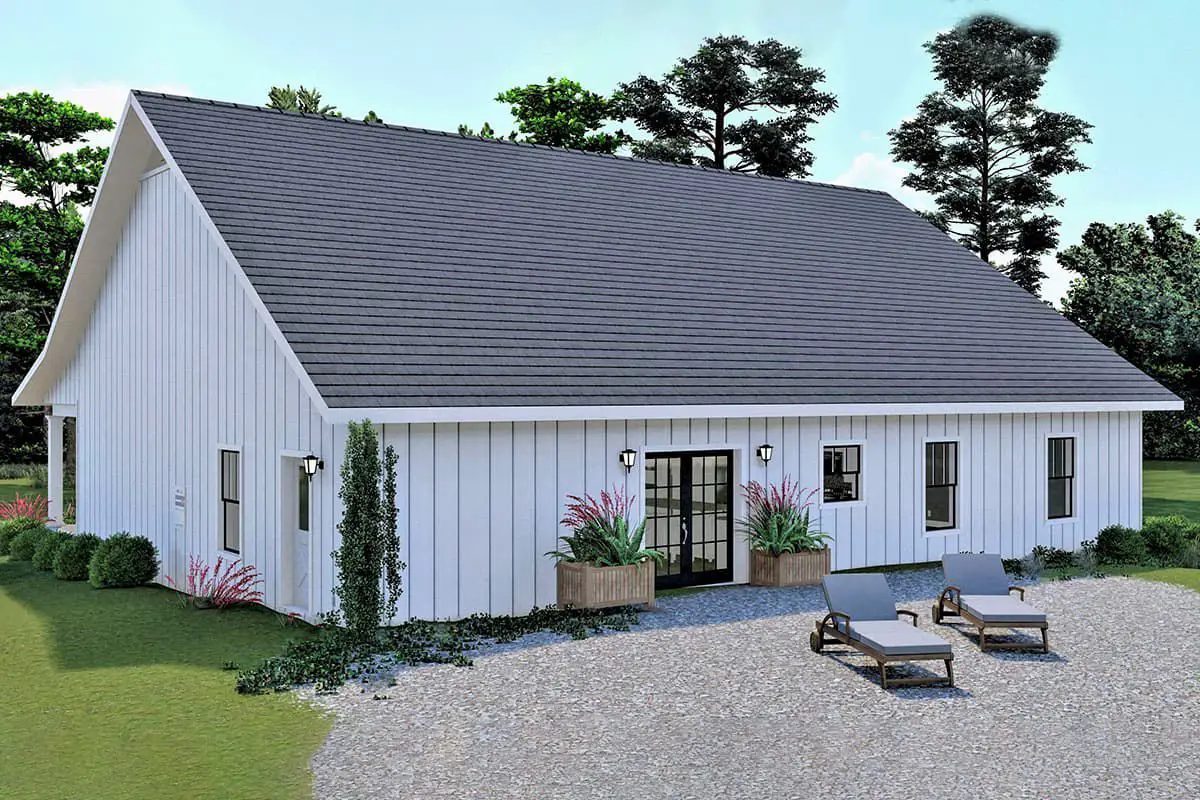 The simple rectangular footprint helps keep construction efficient while the gable and porch add character without overcomplicating things.