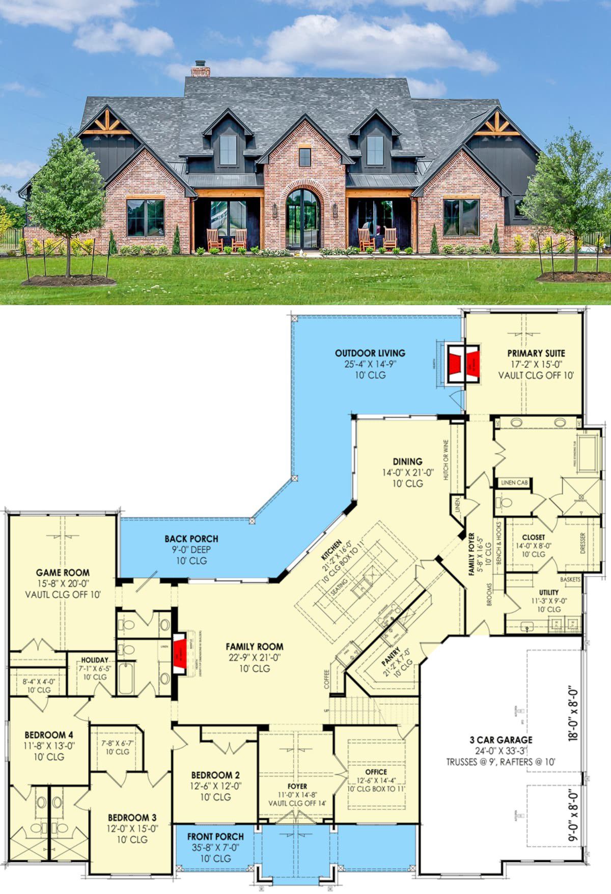 Meet this striking single-level home plan with approximately 4,032 sq ft of heated living area, featuring 4 bedrooms, 4 full baths plus a half-bath, and a 3-car side entry garage.