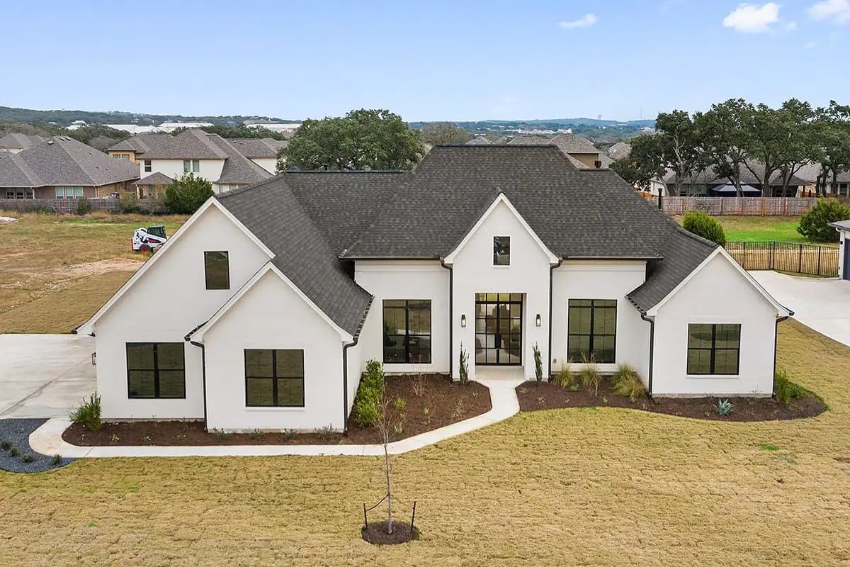 The front façade balances crisp lines with welcoming charm: think modern transitional style—clean trim, abundant windows, and spacious foyer that invites you inside before you even take off your shoes.