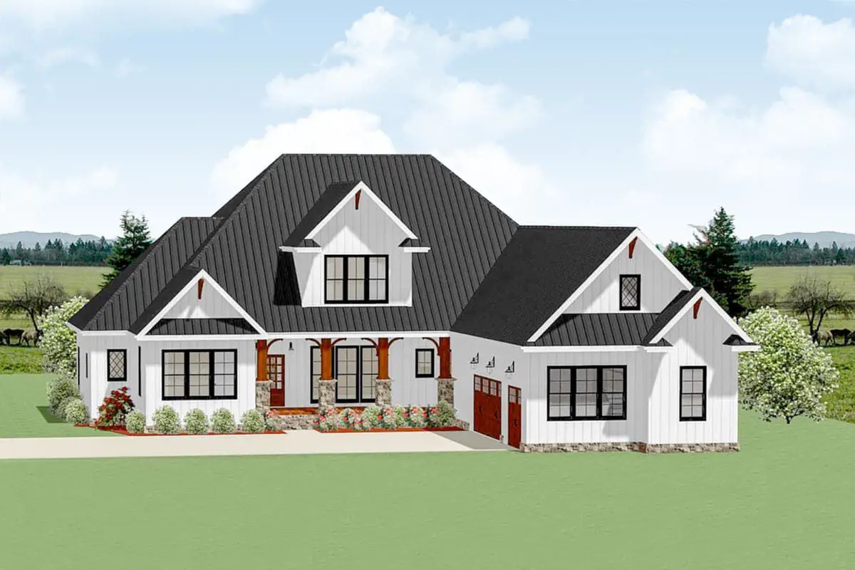 This elegant country-craftsman design spans approximately 3,237 sq ft, featuring 4 bedrooms, 3 full bathrooms and 1 half bath.