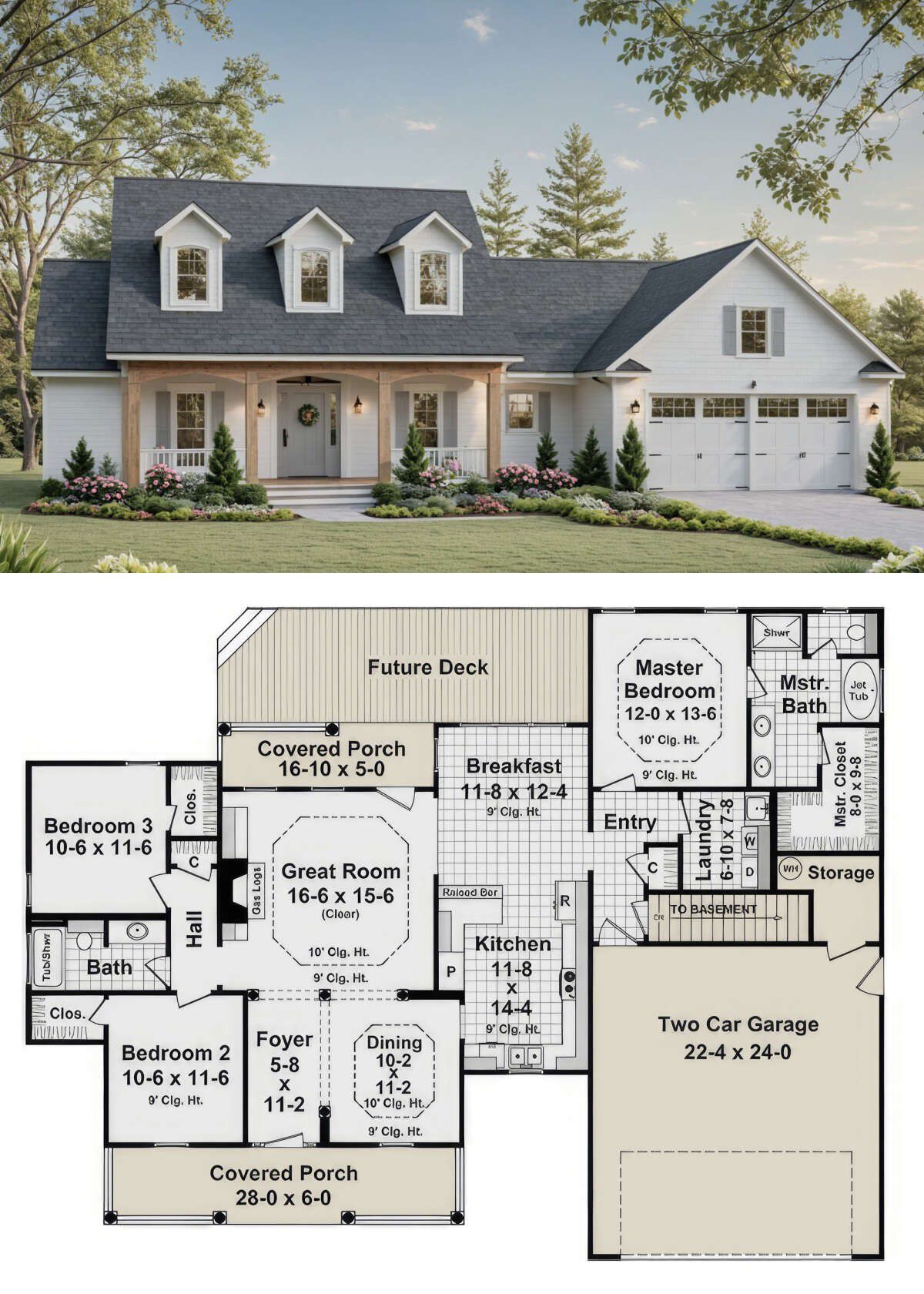 If you’re looking for a home that combines cozy size with smart functionality, this farmhouse layout delivers.