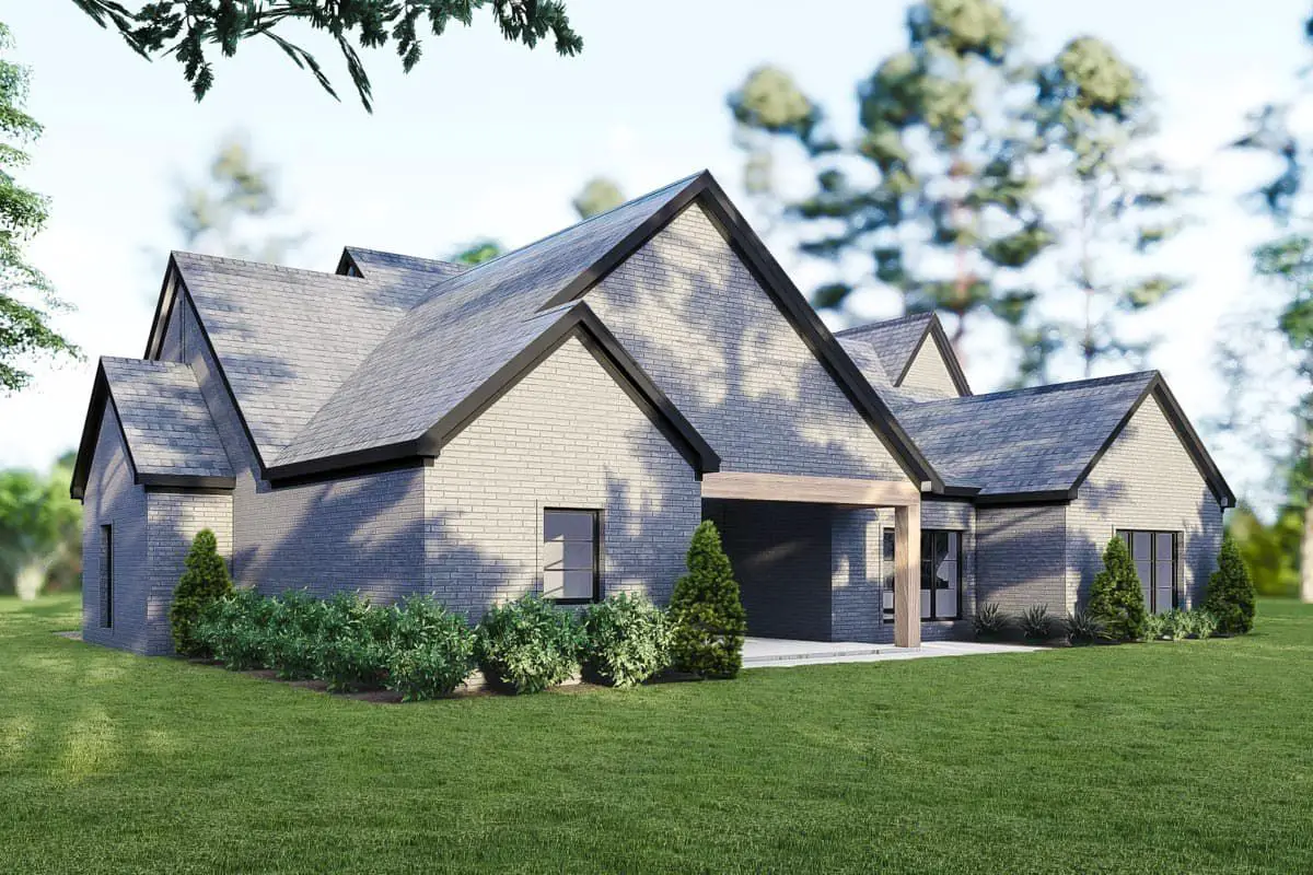 Classic and clean: the front features tall roof peaks, attractive brickwork, and a covered entry that subtly balances modern and traditional charm.