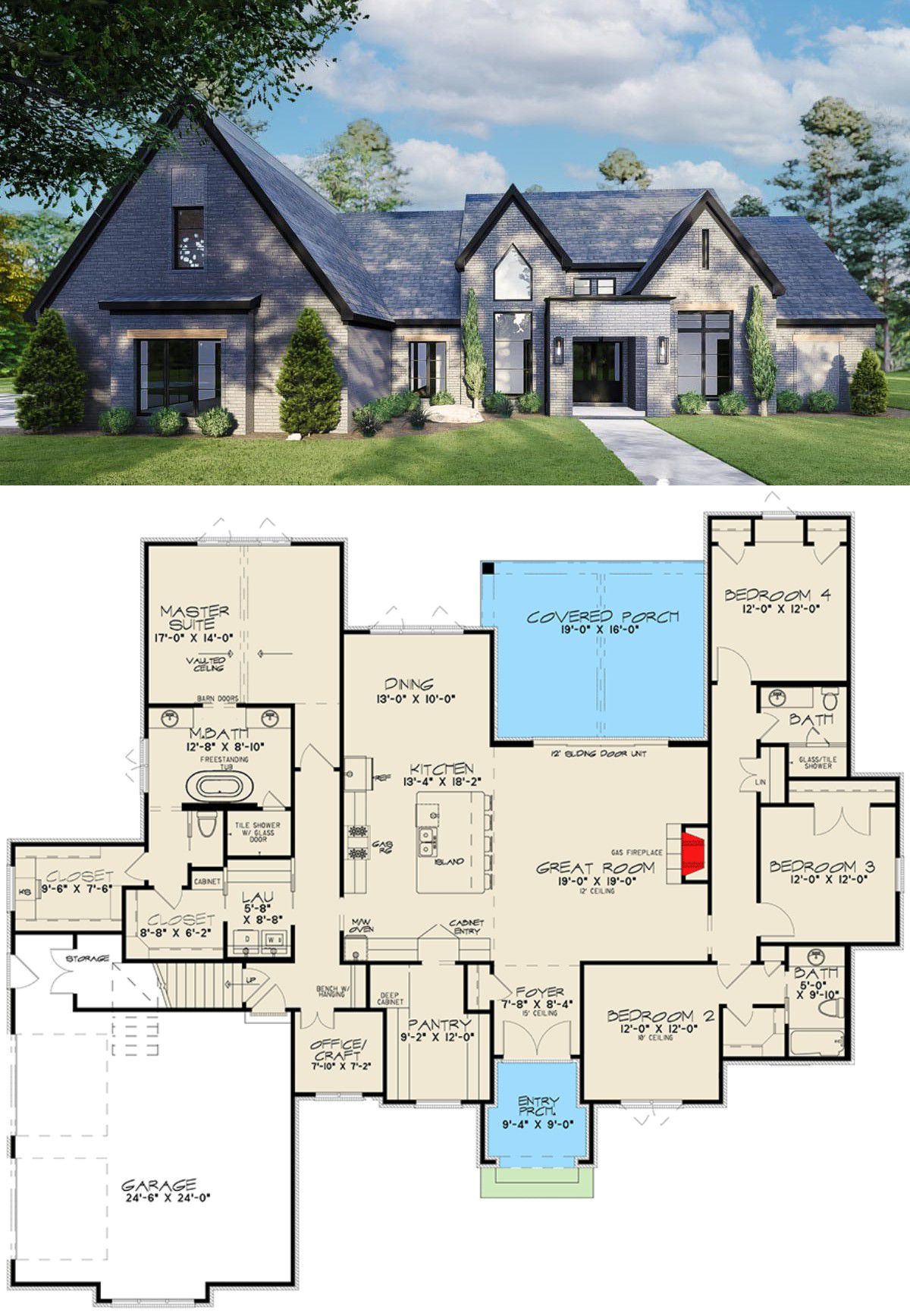 - The **open great room** creates a social hub, while the back porch extends your living space outdoors.