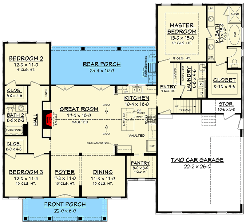 - Ceiling Heights: 9′ on main level, bonus room ceiling ~8′ 11