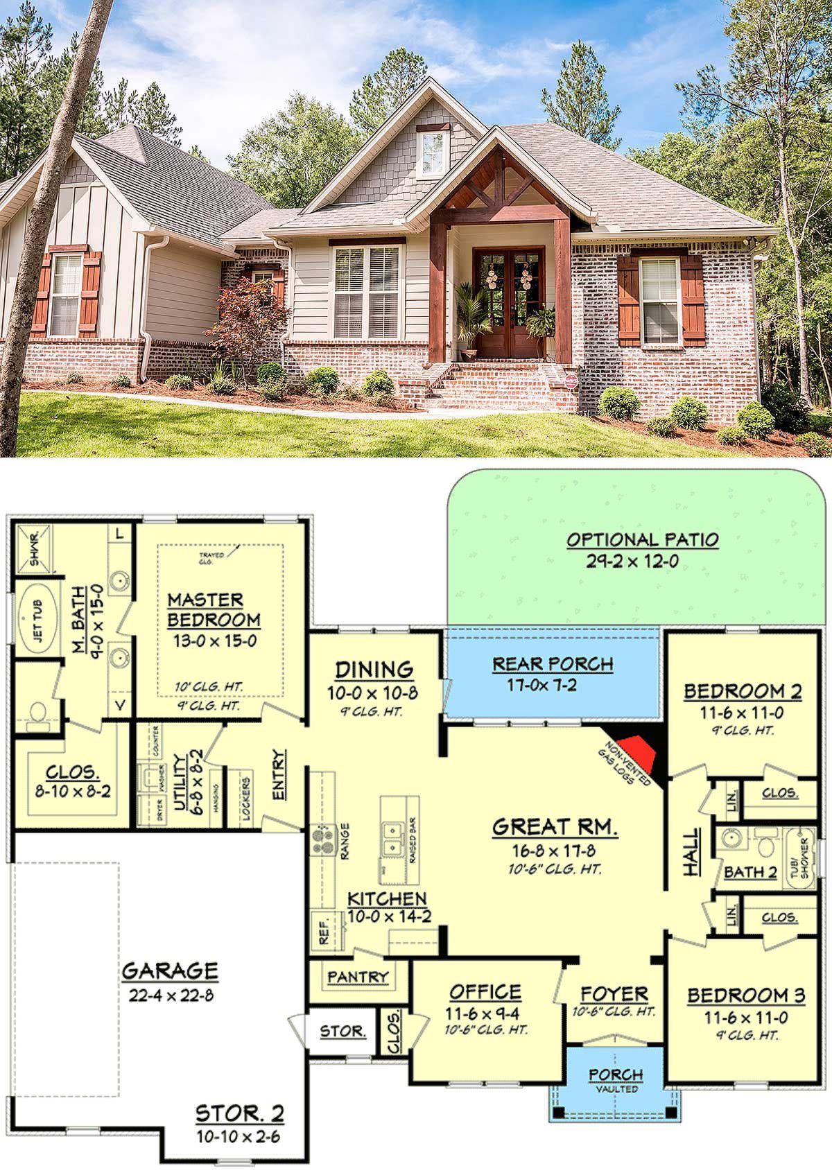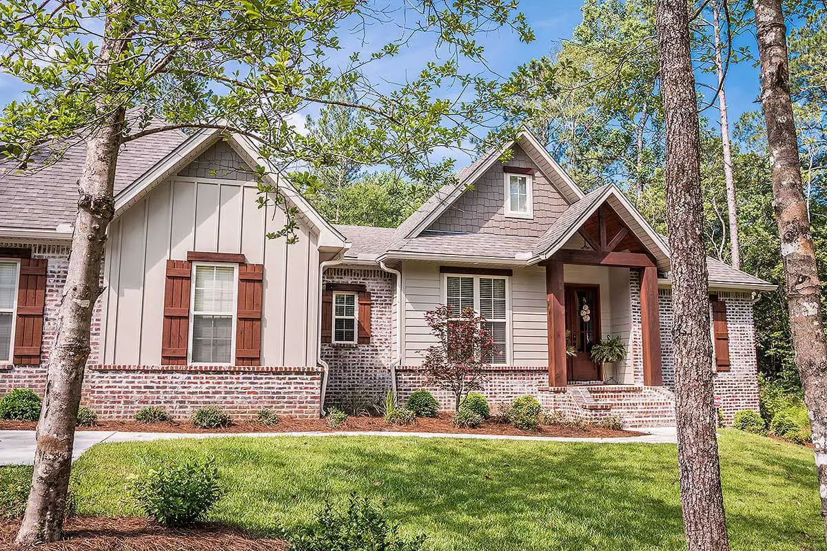 This charming single-story design (~1,769 sq ft) features a split-bedroom layout (master on one side, secondary bedrooms on the other) paired with a beautifully open living area—making it functional, comfortable, and ideal for both privacy and together time.