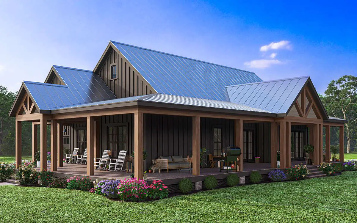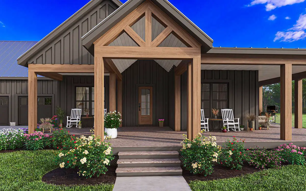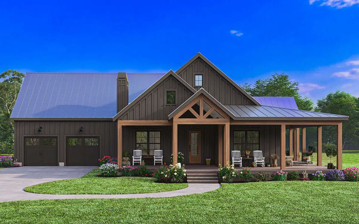 This sleek, modern farmhouse provides ~2,158 sq ft of smart, efficient living with up to 4 bedrooms and 2.5 bathrooms.
