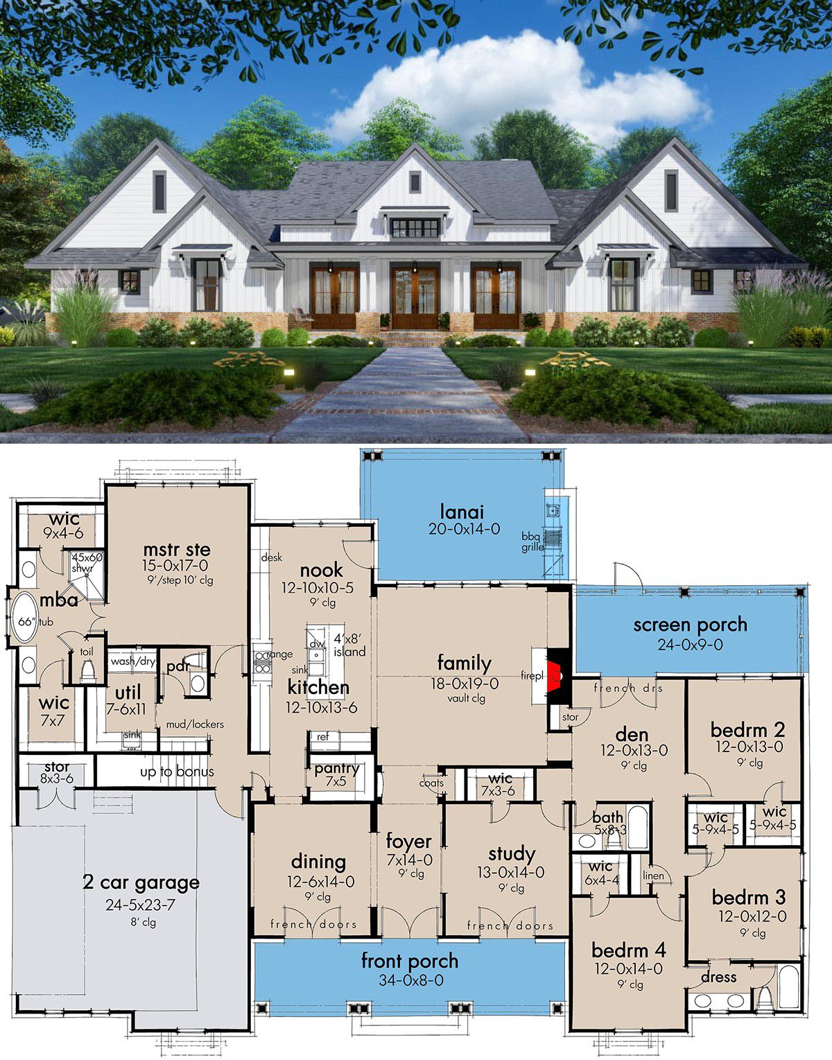| Outdoor Spaces | Front porch, screened porch, covered lanai |