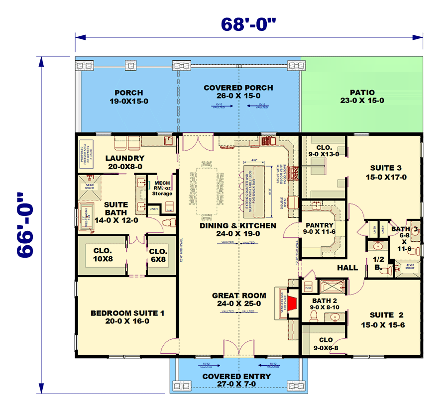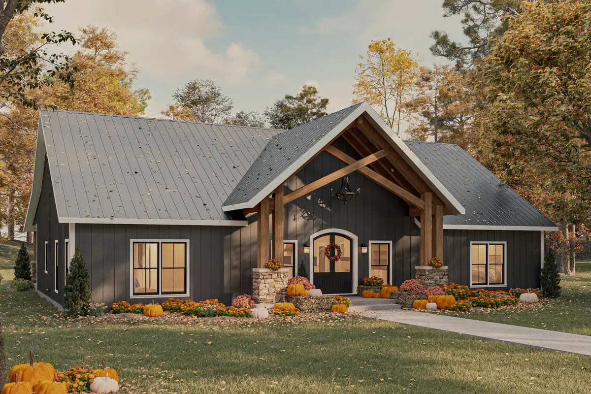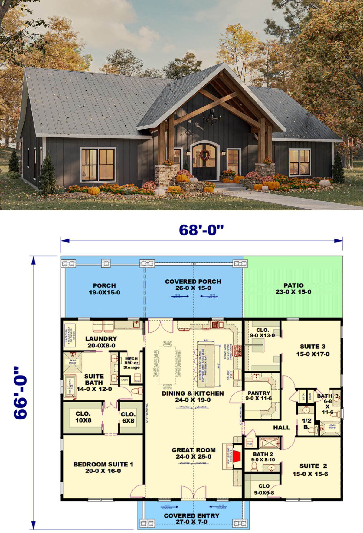 This gorgeous single-level Craftsman plan offers about 2,992 sq ft of elegant and functional space, with 3 bedrooms, 3.5 baths, and a design built for both gathering and privacy.