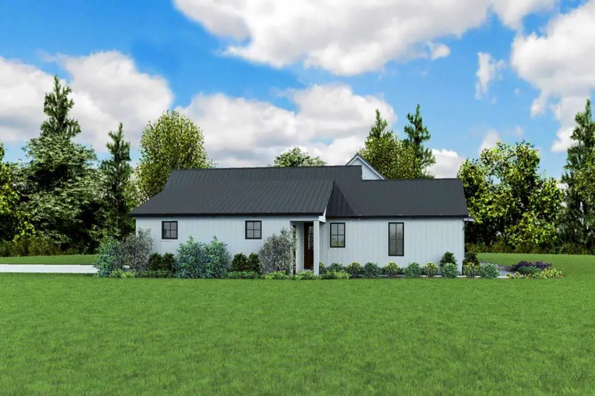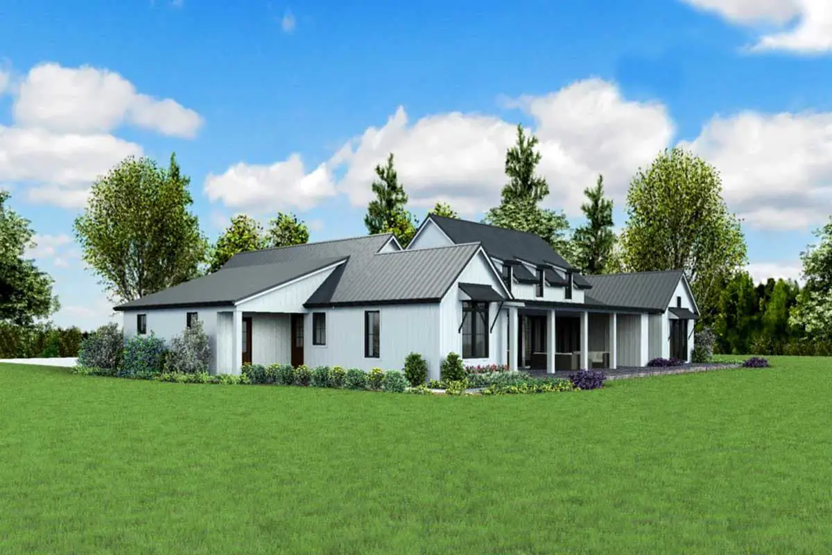 This modern farmhouse plan spans about 2,798 sq ft on one level. With 3 bedrooms, 2.5 baths, a 3-car garage, and a layout that prioritizes light and volume, it blends a farmhouse feel with contemporary openness.
