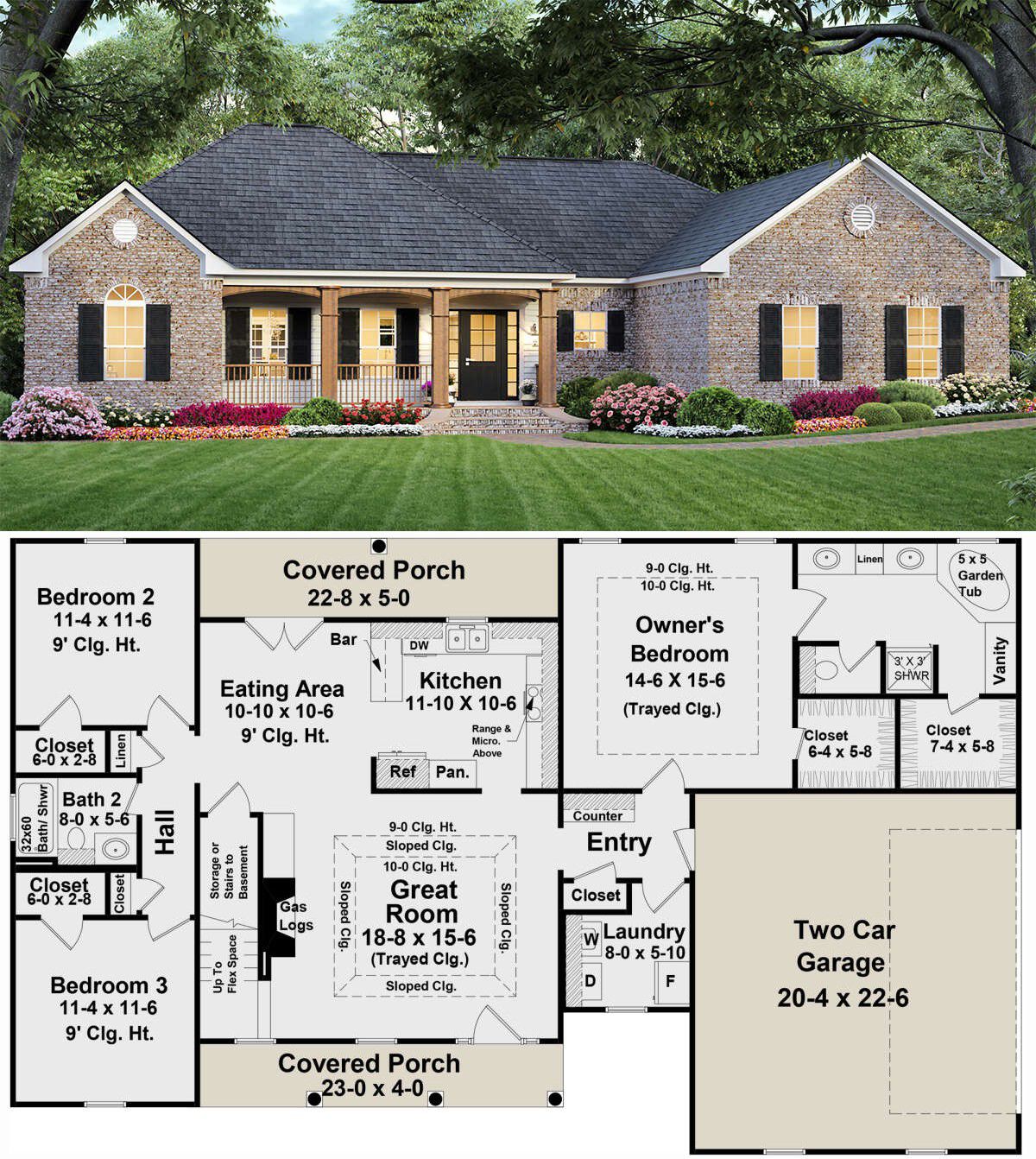 This warm and practical country-style home packs around 1,800 sq ft into a single-level layout with 3 bedrooms and 2 full bathrooms.
