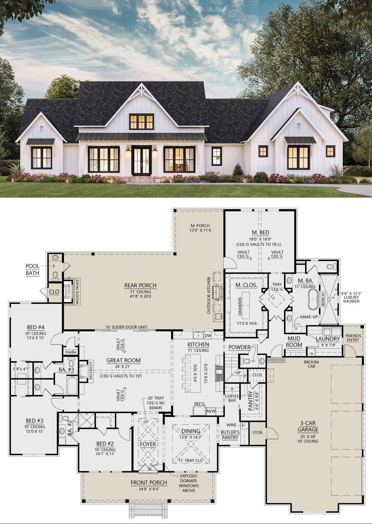 This elegant farmhouse plan offers approximately 3,346 sq ft of thoughtfully designed living space.