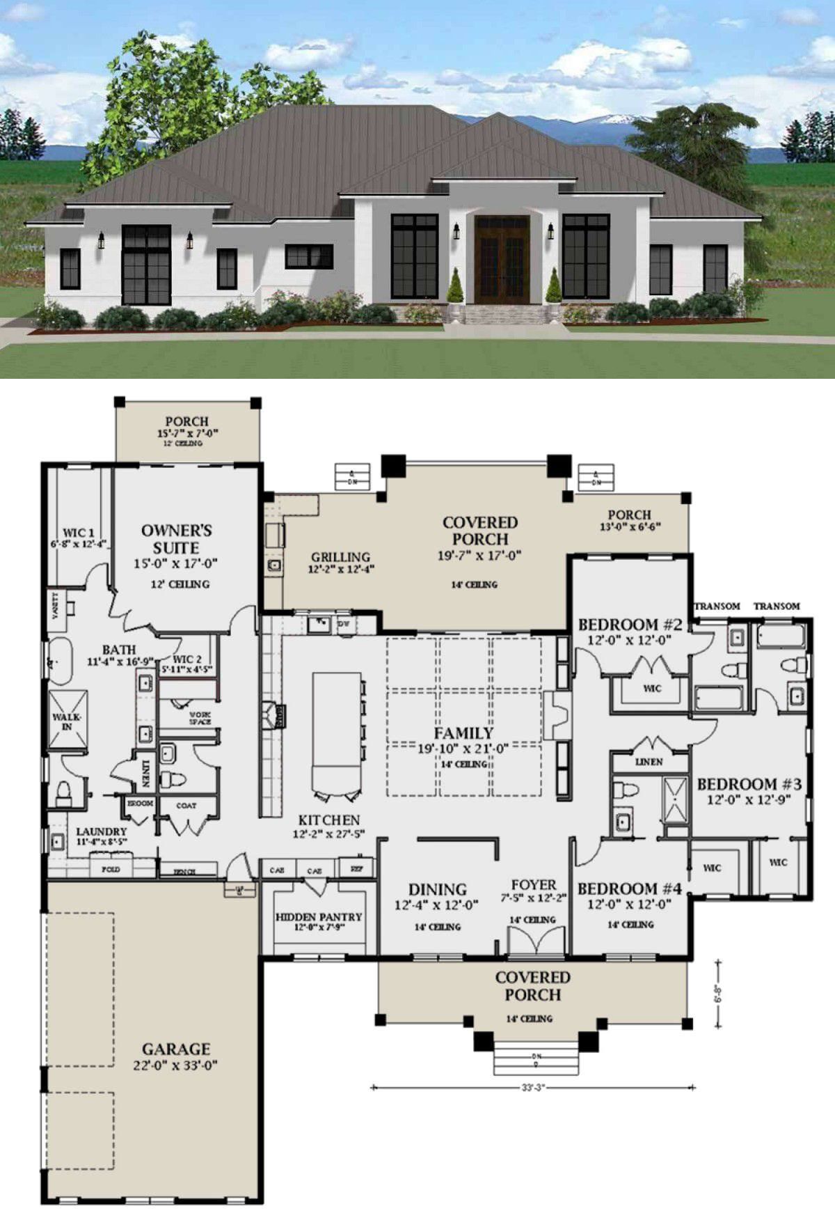 This sleek, modern one-story home offers about 3,046 sq ft of heated living space, featuring 4 bedrooms, 4 full bathrooms, and 1 half bath.