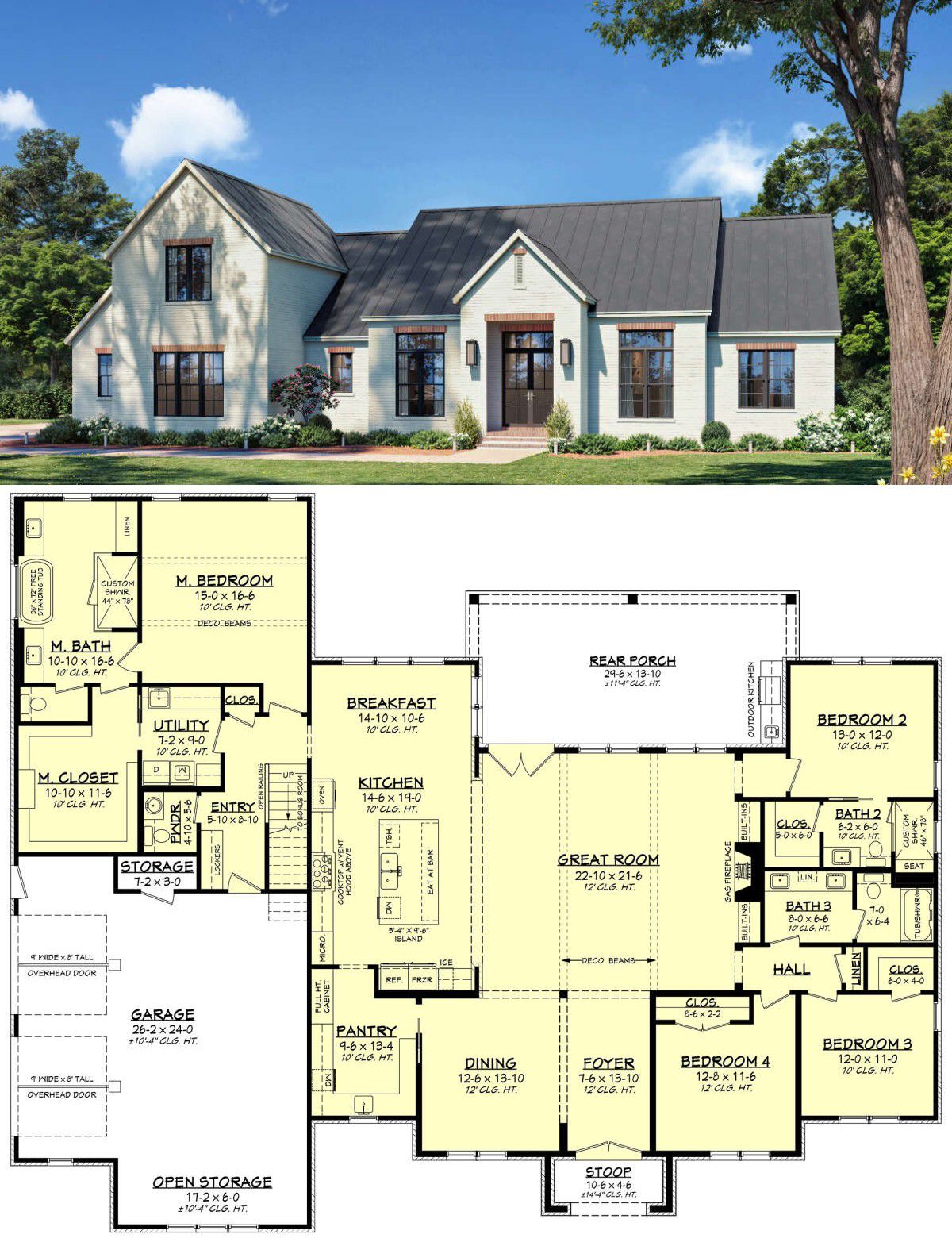 This stylish modern-transitional house plan offers roughly 3,163 sq ft of well-designed living space, with 4 to 5 bedrooms, 3.5 bathrooms, and a thoughtful open layout.