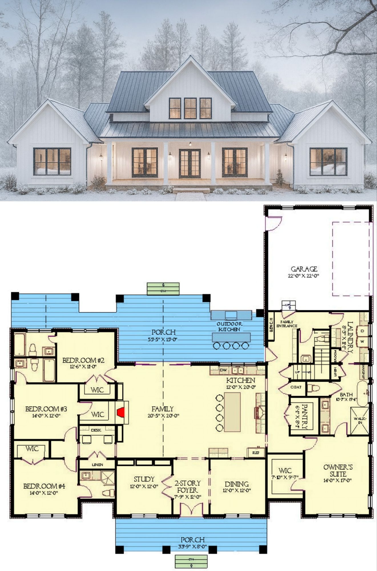 If you’re looking for a modern farmhouse that balances style, practicality, and outdoor charm—this plan checks all the boxes.