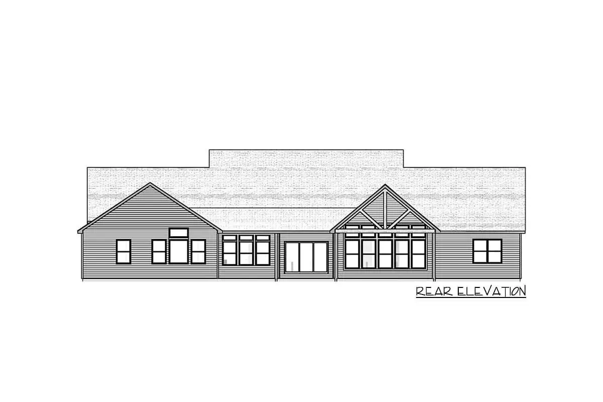 The symmetrical front elevation gives a clean, balanced modern-farmhouse look. Combined with modest porches (~253 sq ft total), the exterior delivers curb appeal without excessive footprint.