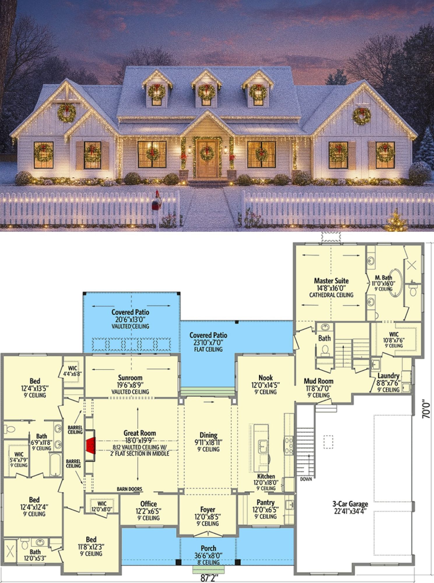 If you aim for a home that blends modern farmhouse aesthetics with smart, functional living — this plan fits beautifully.