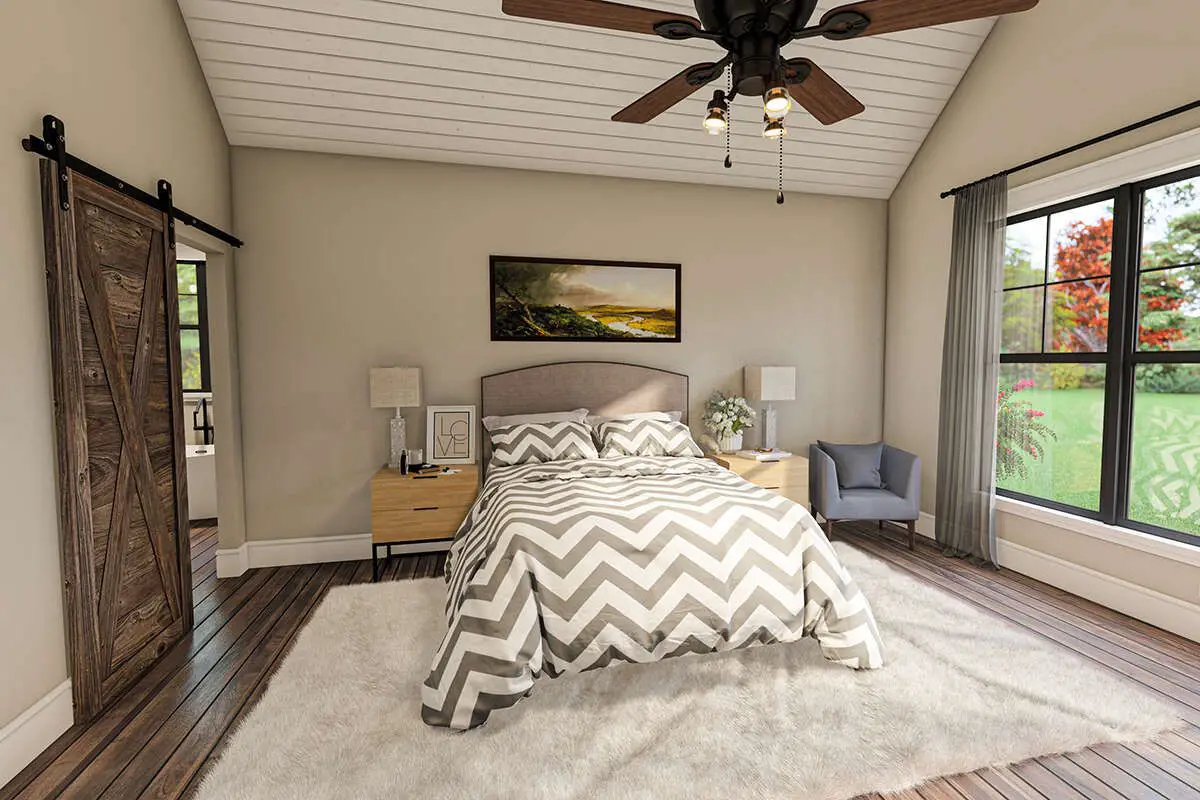 The master suite is designed to deliver comfort and practicality. Through French doors you get direct access to the back porch — perfect for peaceful mornings or evenings outdoors.