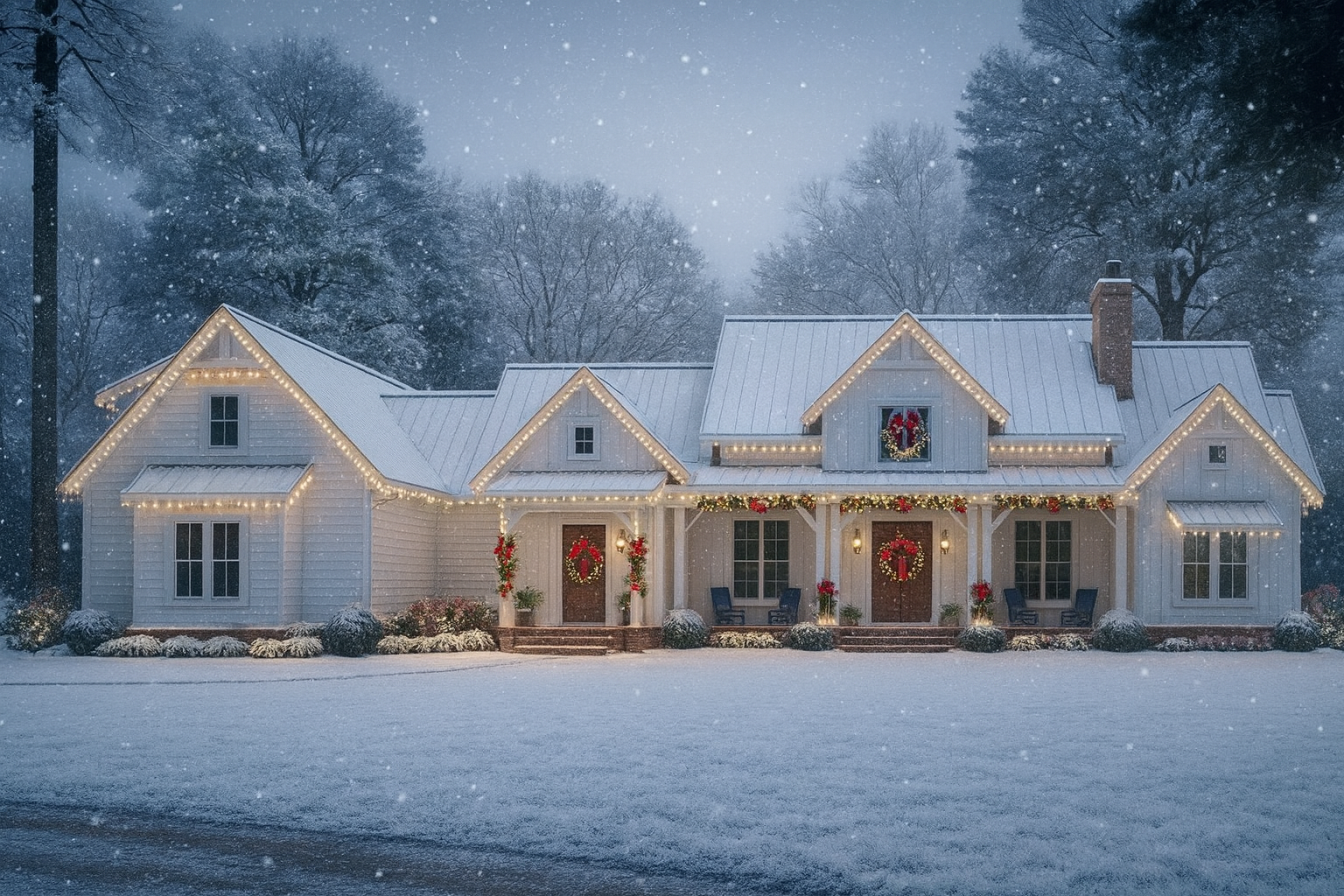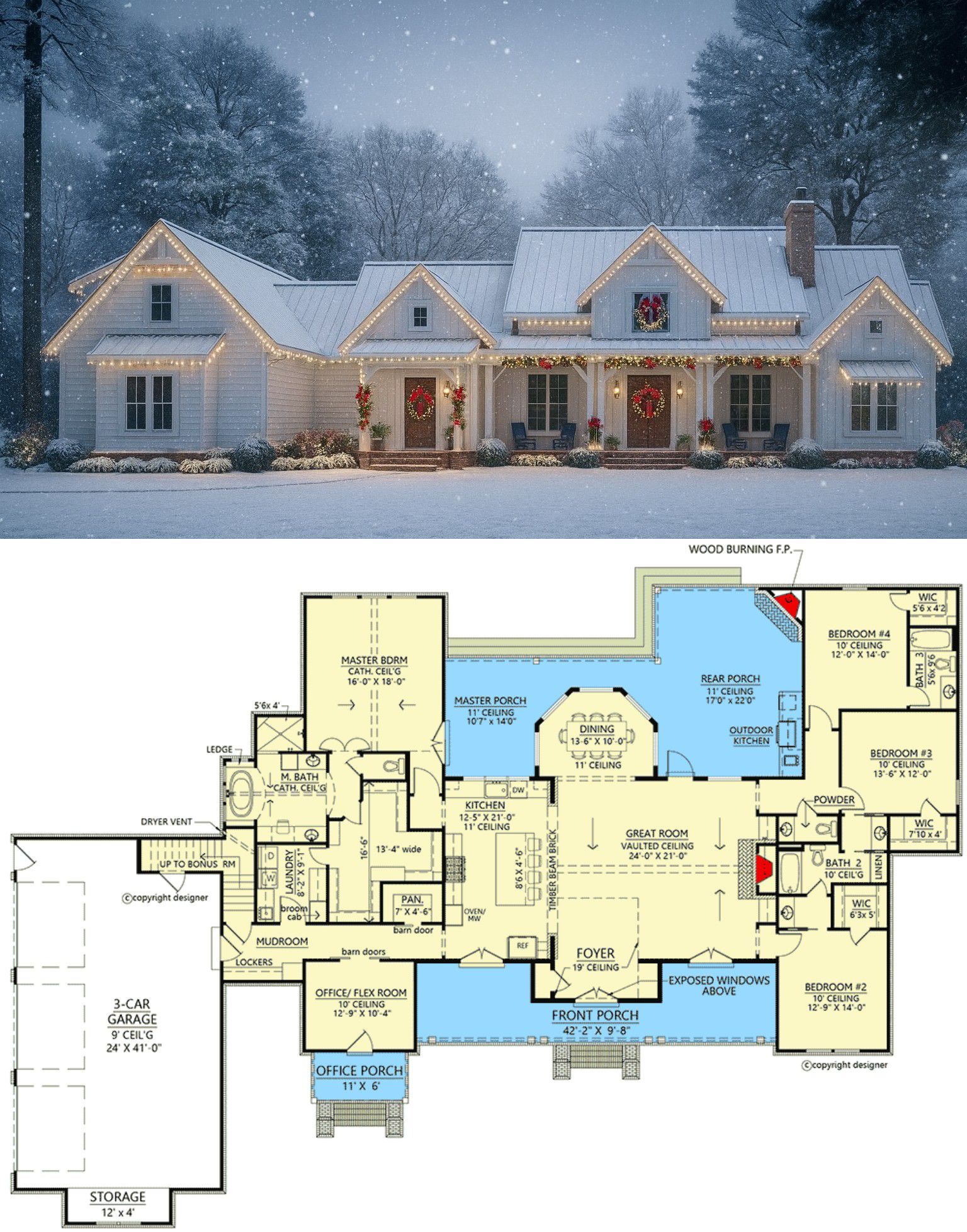 - A big, modern farmhouse layout with spacious porches, open living spaces and classic-coming-home charm