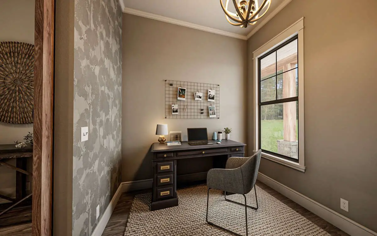 Just off the great room, a home office is tucked behind sliding barn-style doors. It gives you a dedicated, private space for remote work, creative projects, studying, or even a quiet reading nook — without sacrificing the compact nature of the home.