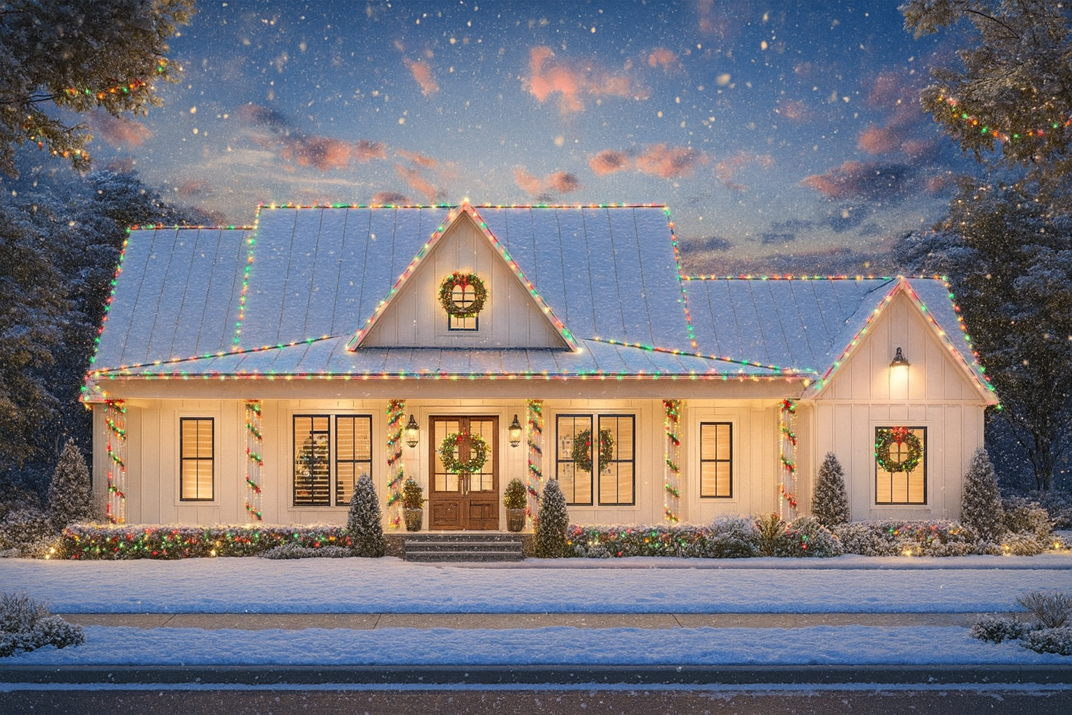 The wraparound porch — which sweeps around the front and sides — offers space for rocking chairs, morning coffee, greeting neighbors, or evening chats under soft lights.