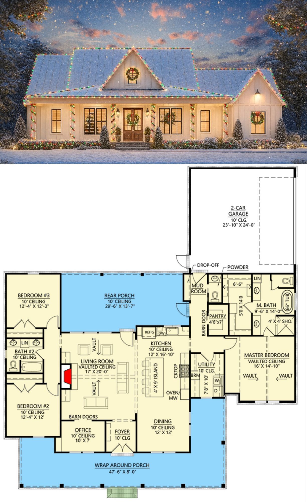 With a welcoming wraparound porch, 3 bedrooms, 2.5 baths, a home office, and a vaulted living room that flows into the kitchen — it’s ideal for anyone wanting light, open living and a cozy countryside vibe without excess space.