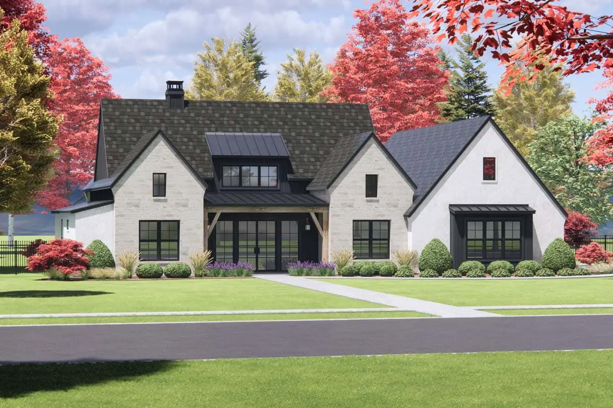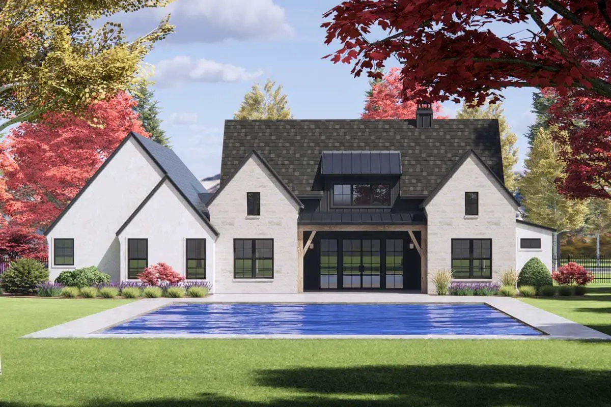 The exterior massing and rooflines are clean and balanced, with enough detail to feel interesting, but not so fussy that it looks dated in five years. It’s the kind of house that looks at home in a nice suburb, on a corner lot, or even on a semi-rural property.