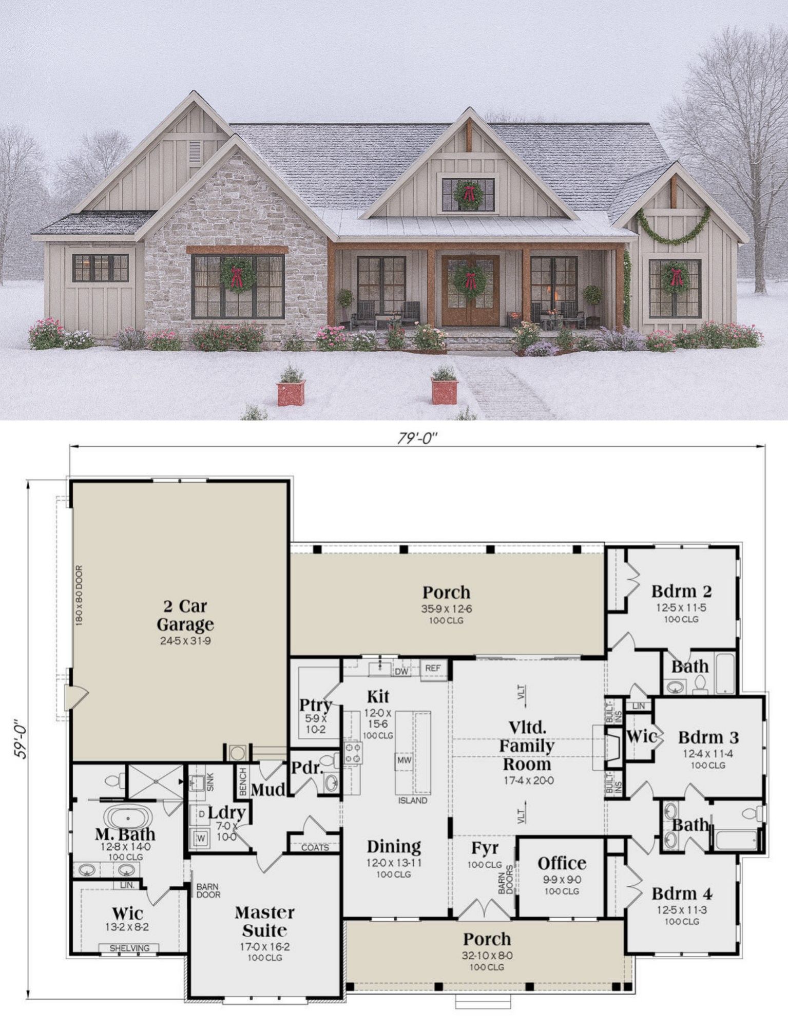 Modern Farmhouse Plan 009-00388 offers a balanced mix of comfort, style, and practicality.