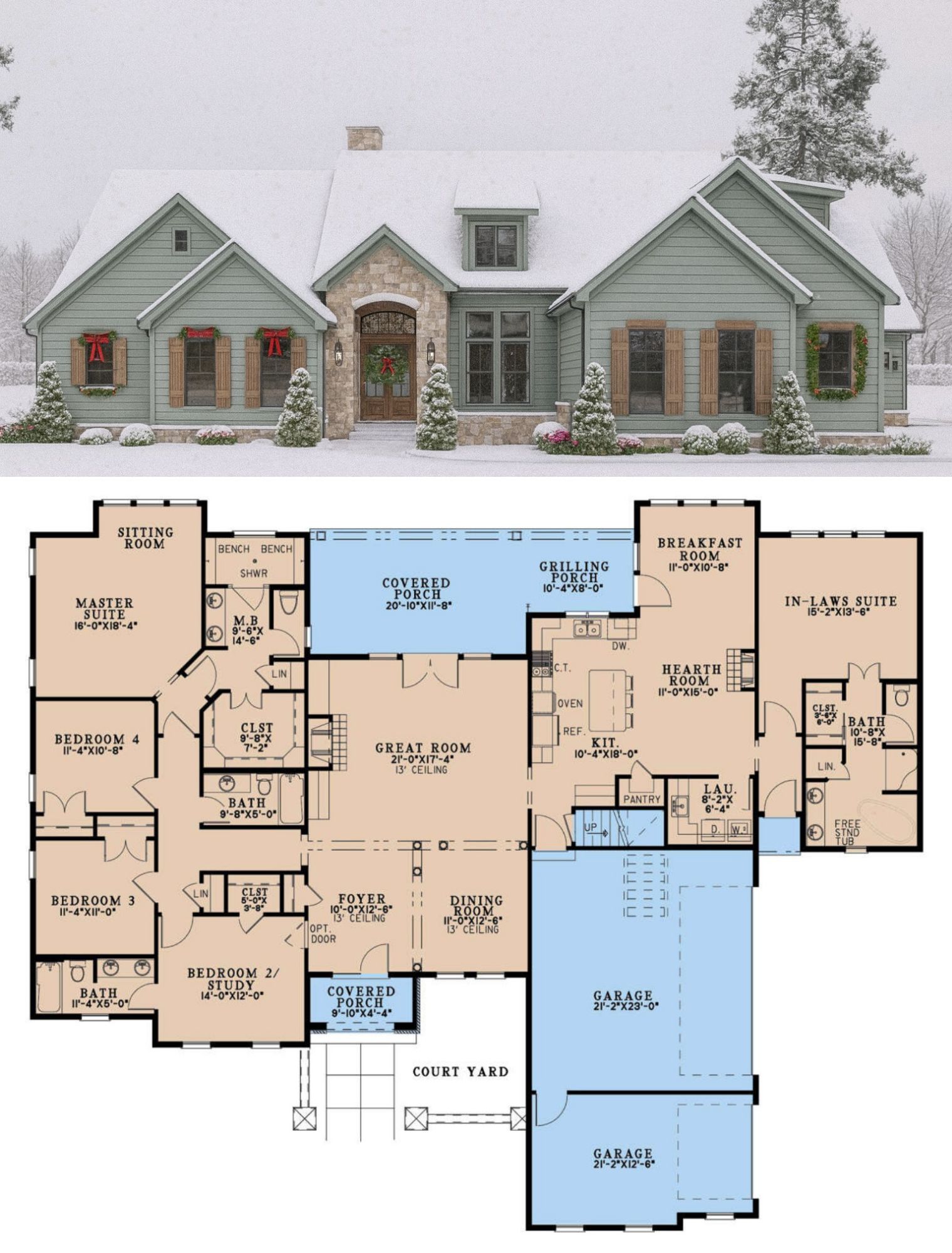 The bonus room (≈ 416 sq ft) adds flexibility: use it as a media room, guest suite, playroom, or even a future master expansion — making this plan adaptable as needs change. 16