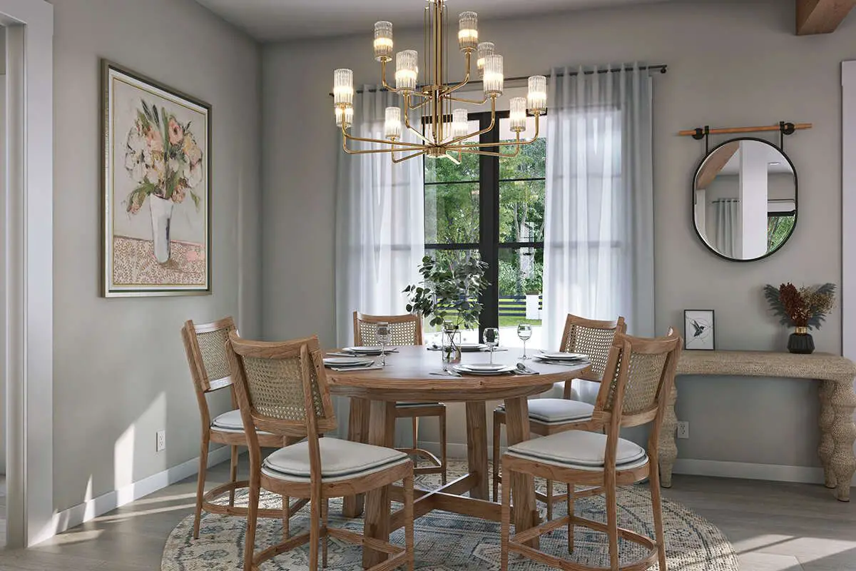 Because the plan is open, you can keep it casual with a farmhouse table or go more elegant with lighting and furniture — the bones of the space support both styles.