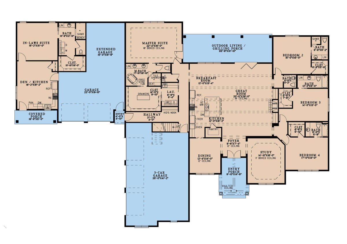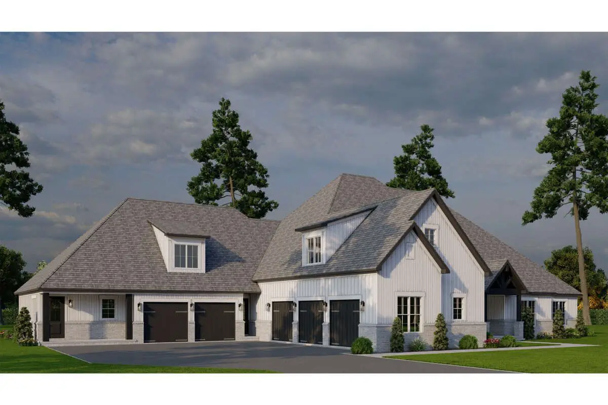 With a large footprint, multiple living zones, and generous garage capacity, this plan offers luxury, flexibility, and comfort — a solid choice for large families or those who value space and versatility.