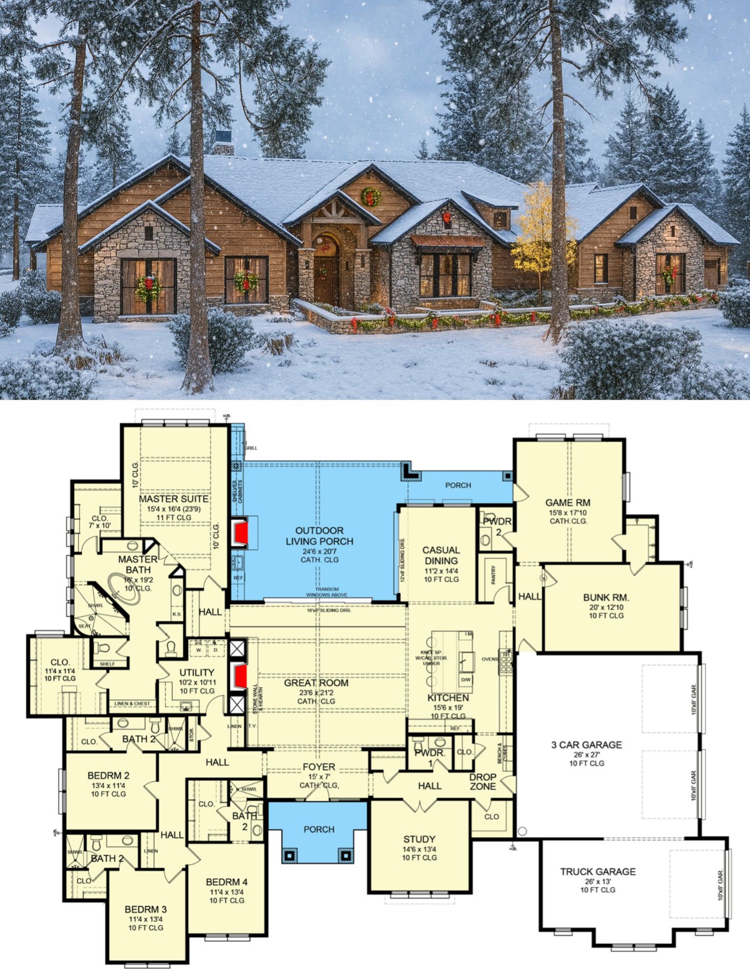 At the rear there’s a 12-ft deep covered porch — potentially with outdoor kitchen — that connects indoor living with outdoor comfort, ideal for relaxing or entertaining. 3