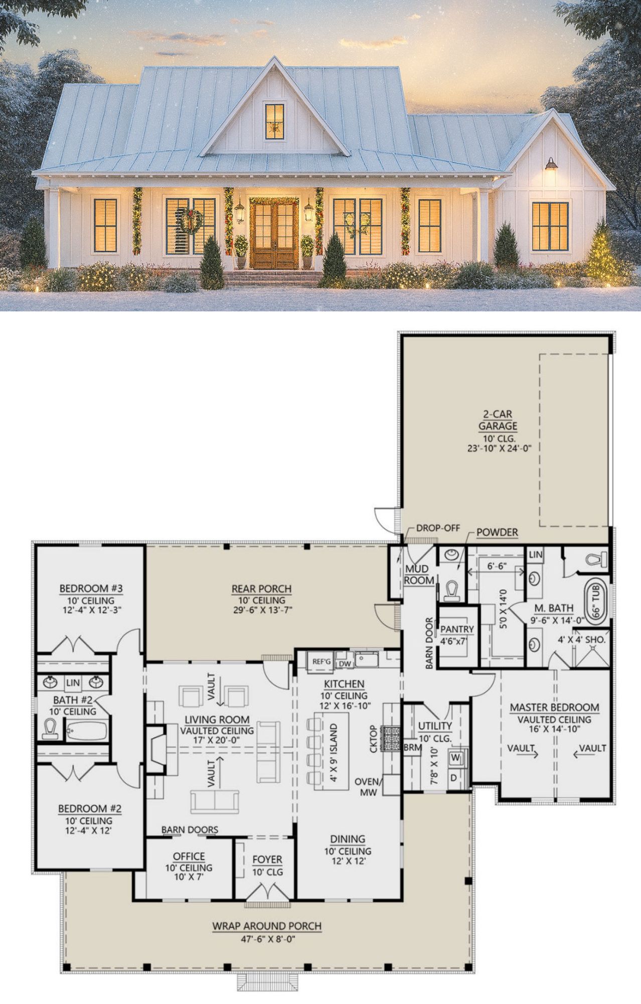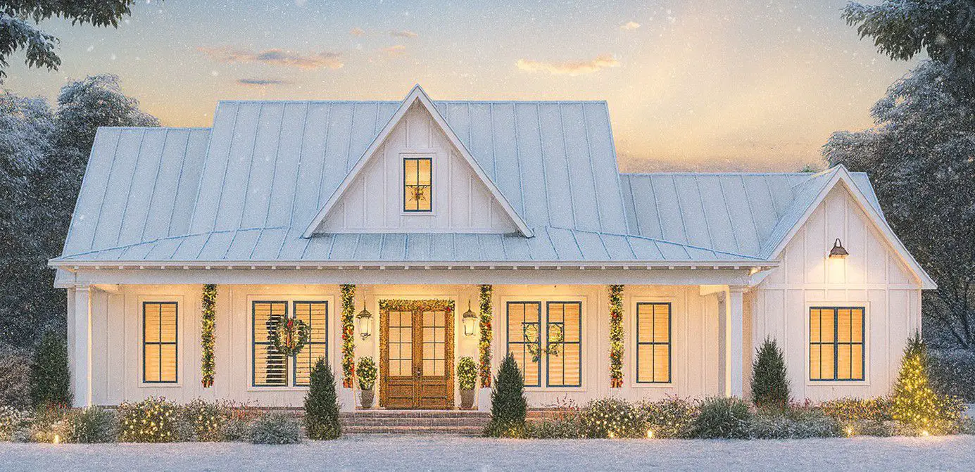 This cozy modern-farmhouse design delivers approximately 2,085 sq ft of heated living space, with 3 bedrooms and 2 full + 1 half bathrooms.