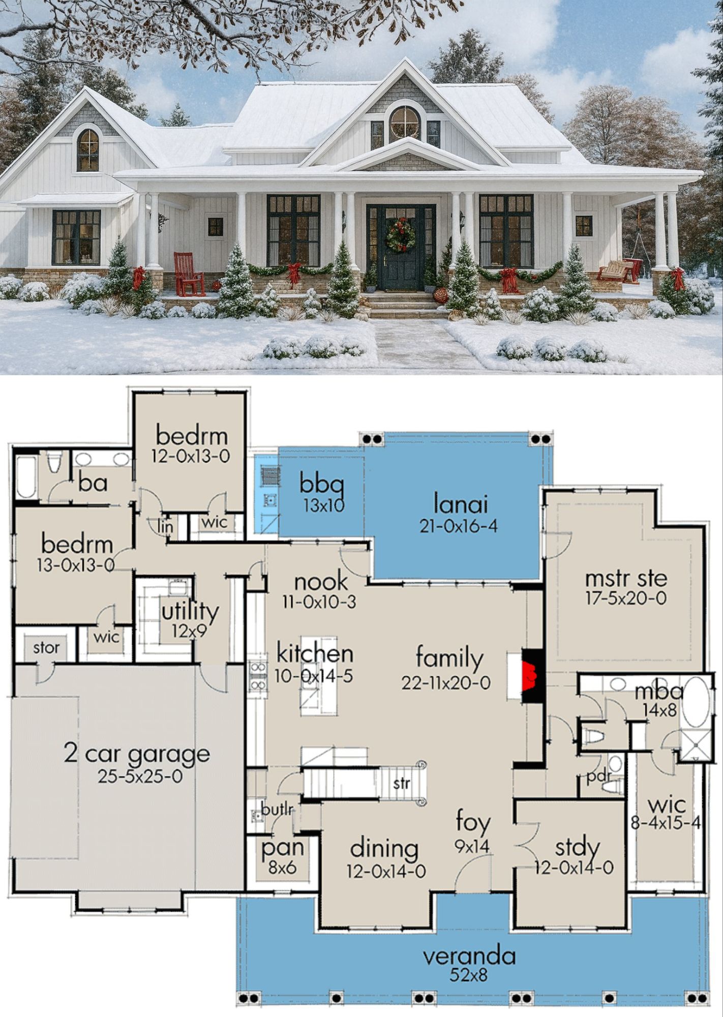 | Covered Porches / Outdoor | Front porch + rear lanai with outdoor-kitchen/barbecue area |