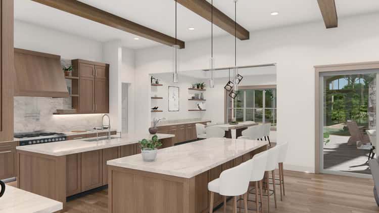 The kitchen is positioned as a true working hub rather than a pass-through space. There’s room here for serious cooking, casual meals, and social interaction all at once. A large island anchors the layout, offering prep space, seating, and a natural gathering point during busy days or celebrations.