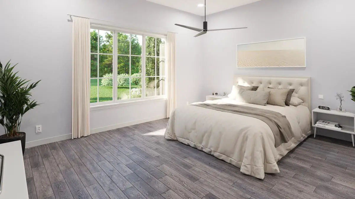 The bedroom layout prioritizes comfort and privacy. The primary suite is set apart from the secondary bedrooms, creating a quiet retreat at the end of the day.