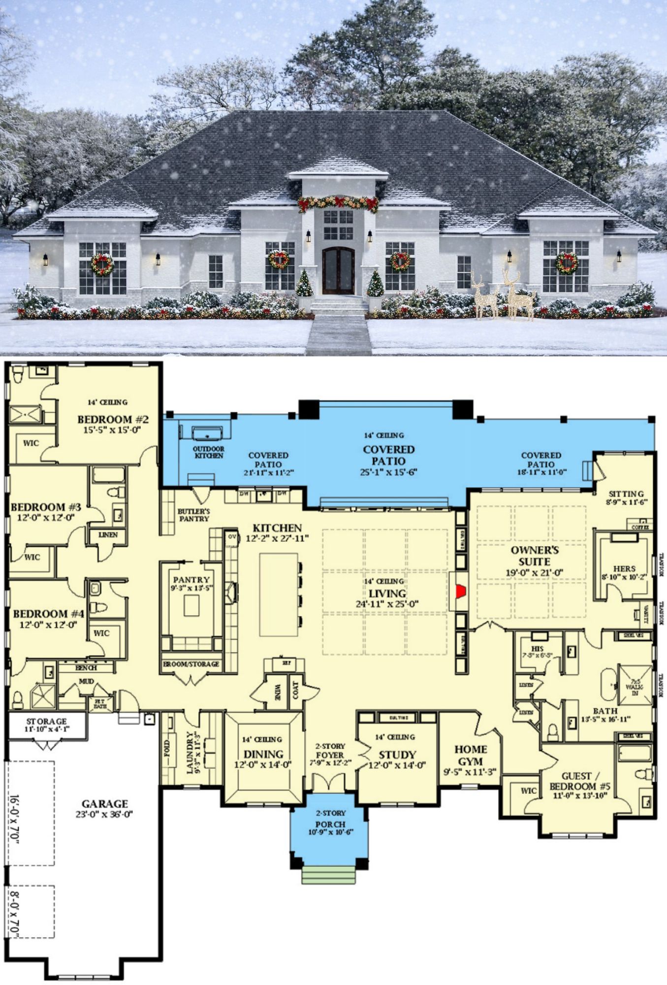 This transitional design brings together “big home” comfort and surprisingly livable day-to-day flow. You’re getting roughly 5,038 sq ft of heated space on one main level, with 5 bedrooms and 5.5 bathrooms—which is basically the dream if your household includes kids, guests, in-laws, or anyone who believes mornings are a competitive sport.