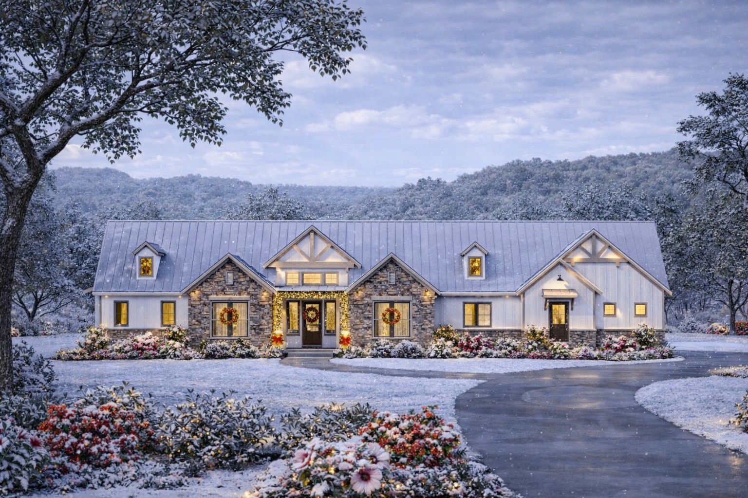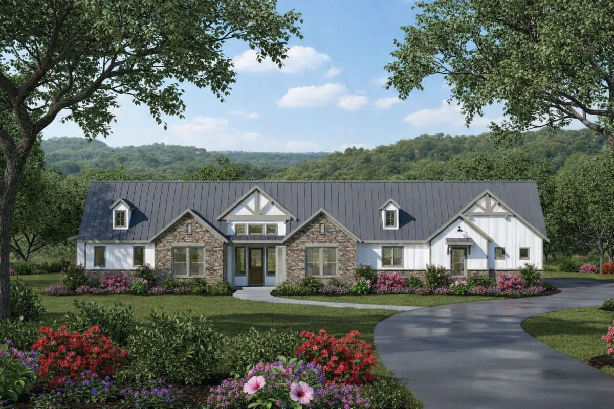 This modern transitional plan delivers approximately 3,917 sq ft of intelligently arranged living space with a balanced layout designed for comfort, privacy, and everyday family life. The home includes 5 bedrooms, 5 full bathrooms, and an attached 3-car garage.